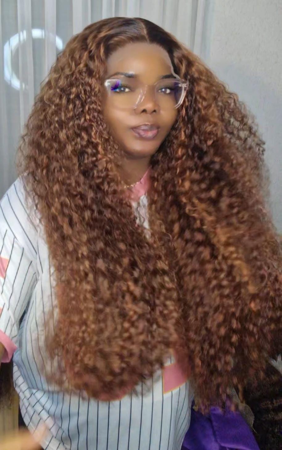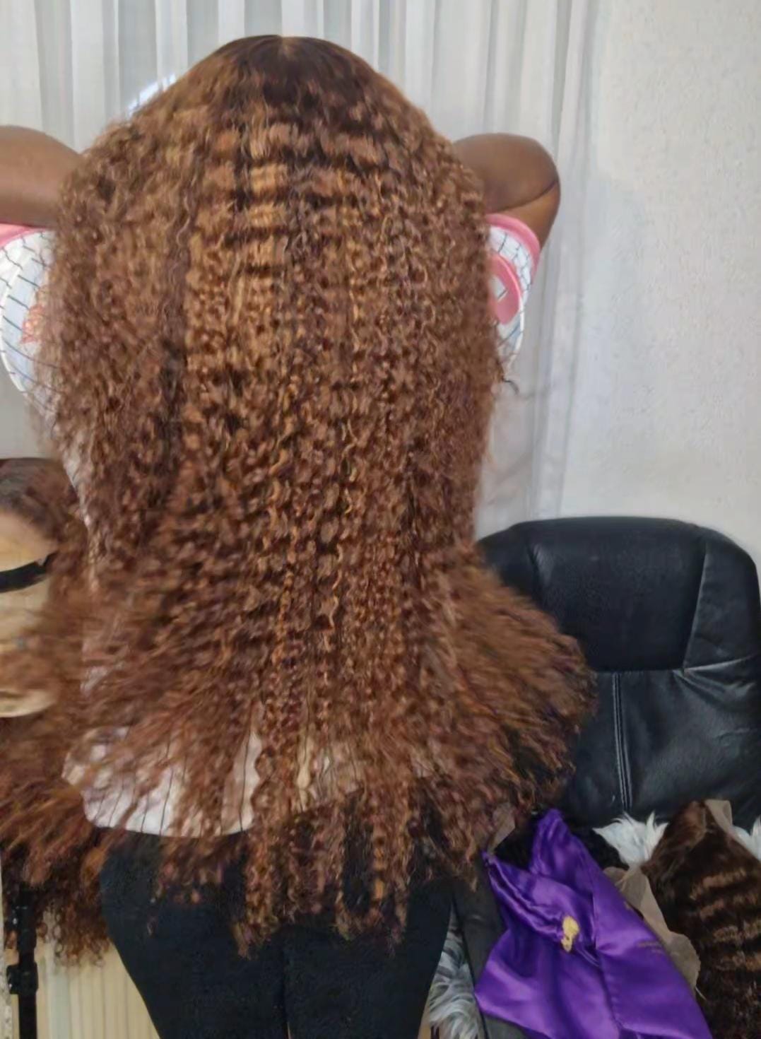 Create an Account LoginHigh quality raw human hair wig with 7x7 Glueless lace closure, highlight colour water curls.